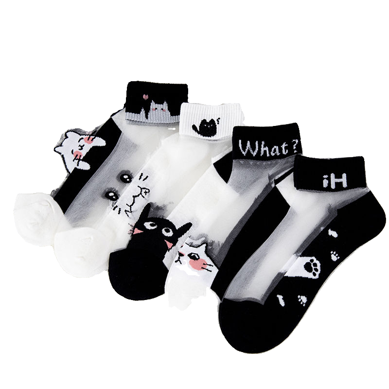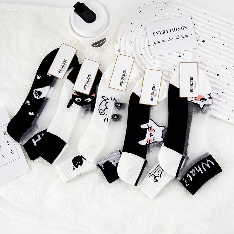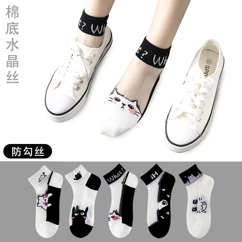 Women's Short Stockings Spring Summer Thin Crystal Socks Ice Silk Glass Silk Wear-Resistant Black Socks Pure Cotton Bottom Transparent Non-Slip quantity