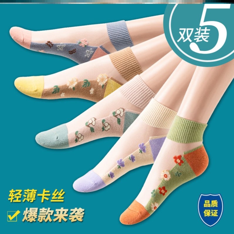 Women's Silk Socks, Summer Ice Silk Short Tube Cotton Bottom Crystal Socks, Glass Silk Short Embroidered Boat Socks, Breathable and Anti-Hook quantity