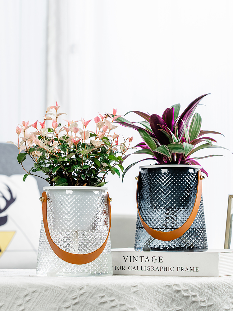 Jarrón de cuero de lujo, maceta de plástico para flores frescas y secas