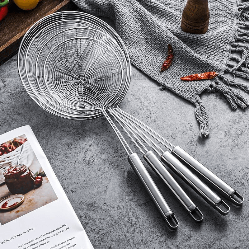 Colador de acero inoxidable, para fideos y dumplings, colador grande para freír