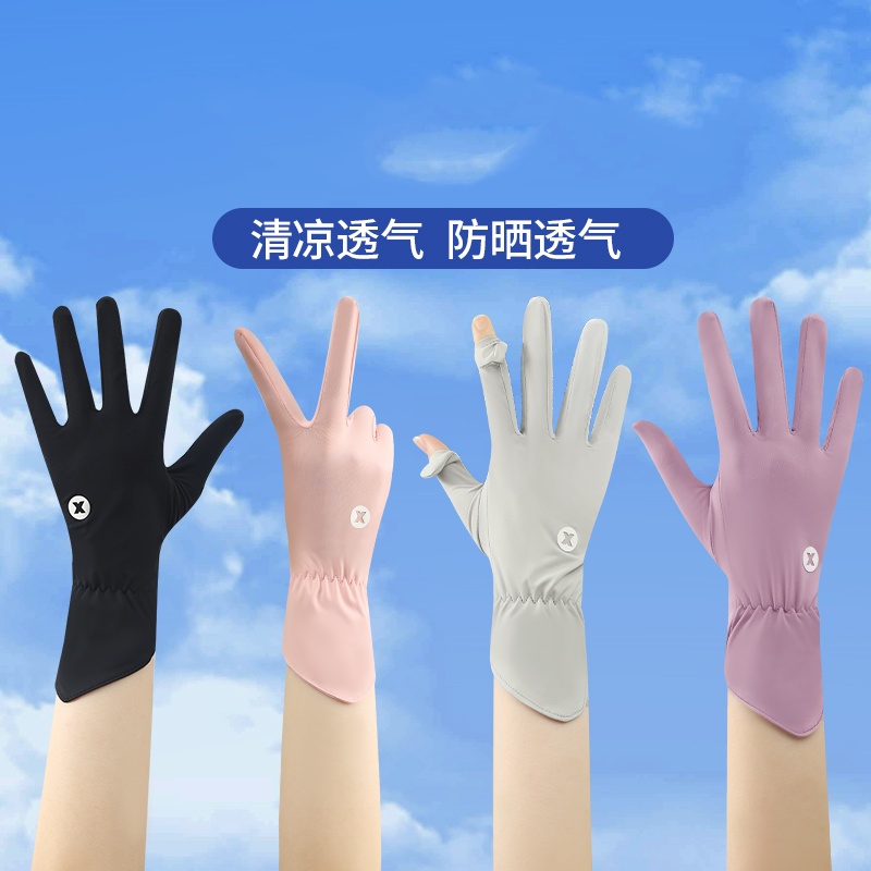 Guantes de protección solar de seda fría para mujer, verano, para conducir, montar, con dedos al aire, transpirables y delgados