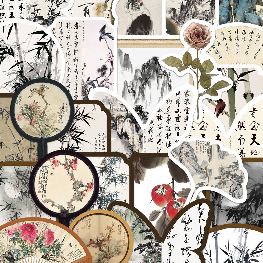 60 hojas de pegatinas de pintura de tinta china, estilo retro, acuarela, pintadas a mano, para fundas de teléfono, cuadernos, impermeables, DIY