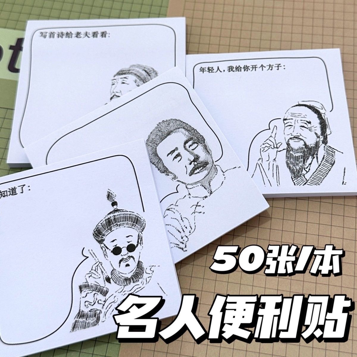 Notas adhesivas creativas, notas de personajes históricos, notas para dejar mensajes