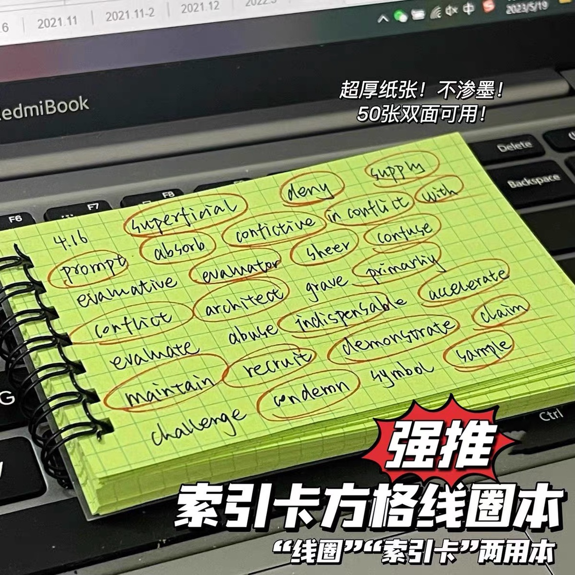Tarjetas de índice verdes, cuaderno portátil para estudiantes