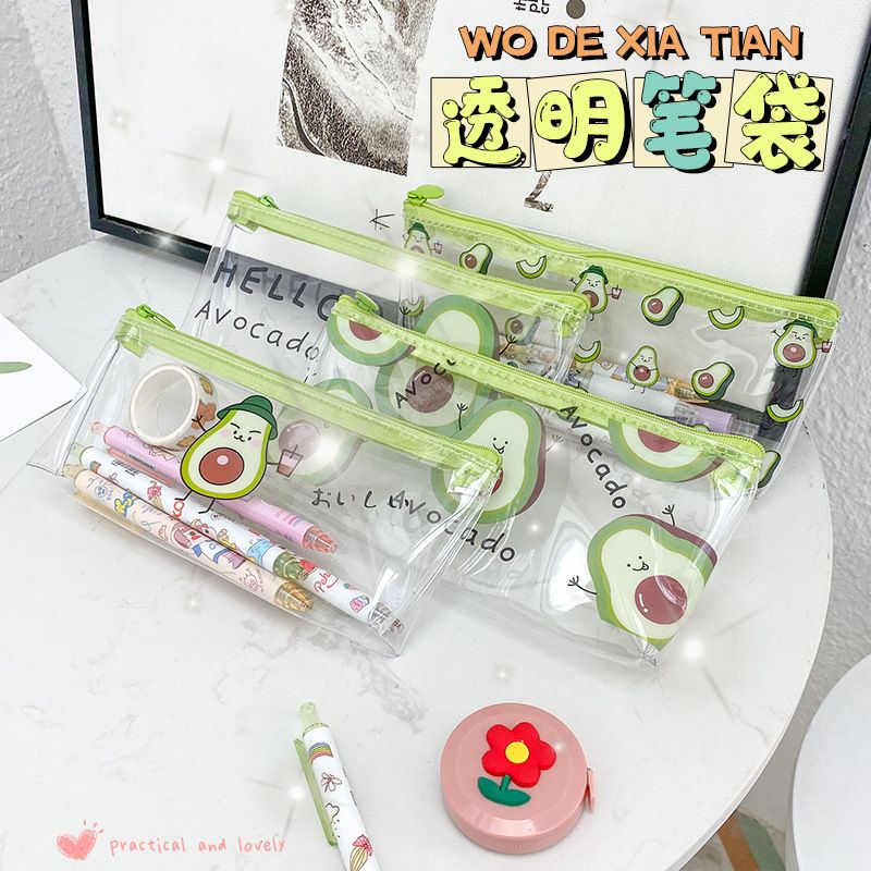 Estuche de lápices transparente de estilo ins, lindo, aguacate, caja de útiles escolares, gran capacidad