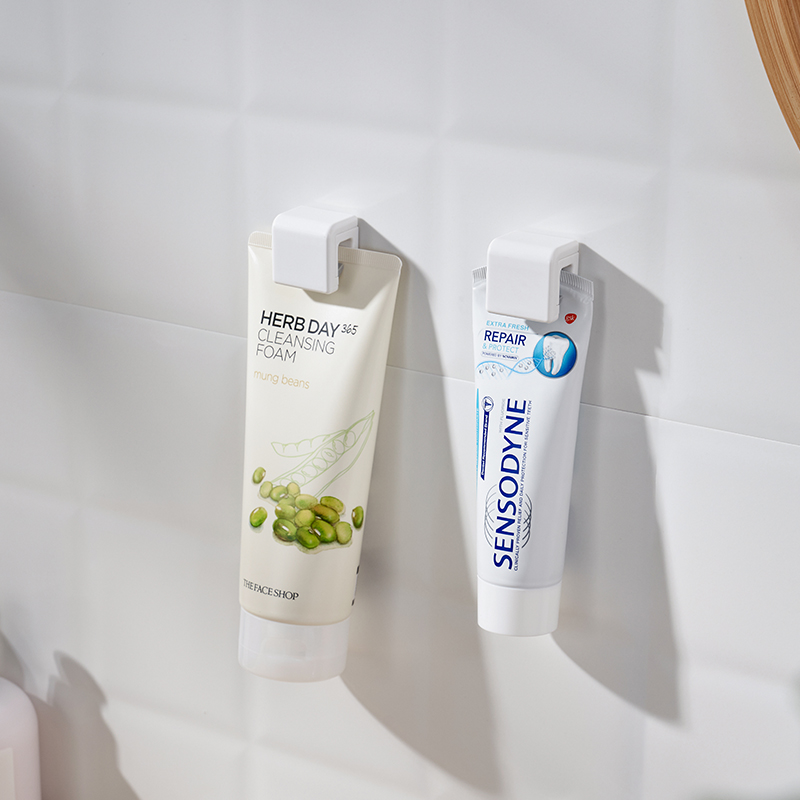 Soporte para pasta de dientes, sin perforación, montado en la pared, exprimidor de pasta de dientes, organizador de baño