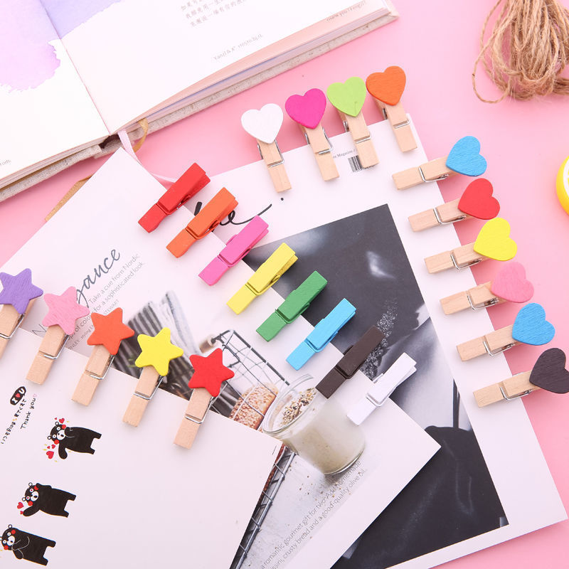 Pinzas de madera coloridas en forma de corazón, decoración para fotos en el aula