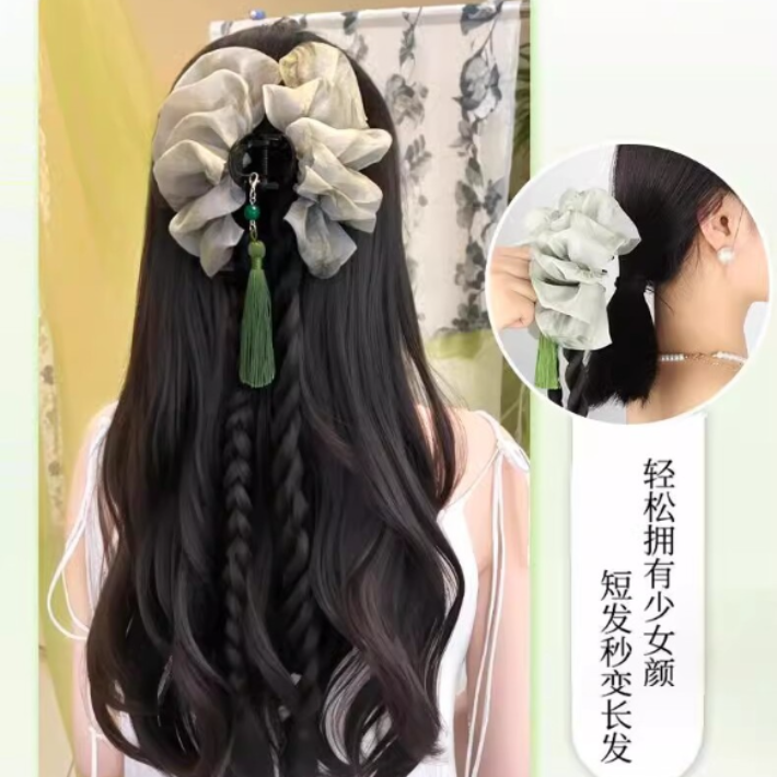 [Ink Rain Cloud] Tie-Dye Claw Clip Ponytail Wig for Women, Cool and High-End, Volume Enhancing Braid for Youth