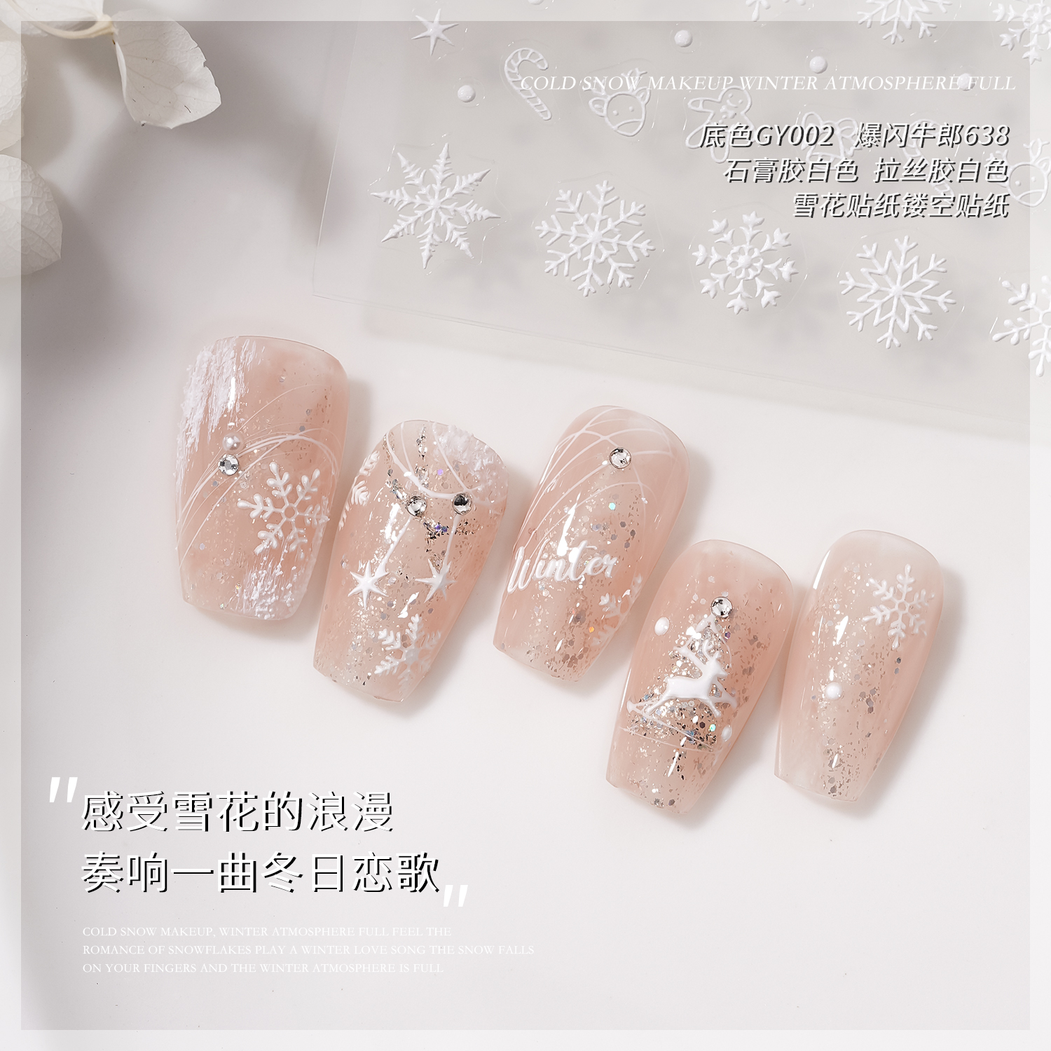 White Snowflake Nail Art Hollow Stickers for Christmas, Winter Nail Decorations