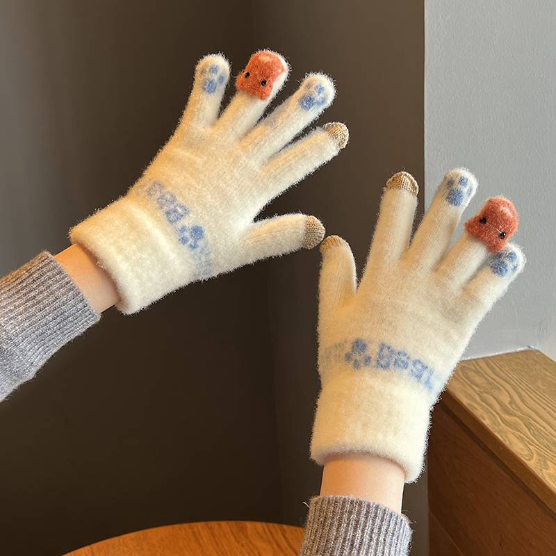 Winter Warm Gloves for Women, Cute Korean Style Riding Gloves