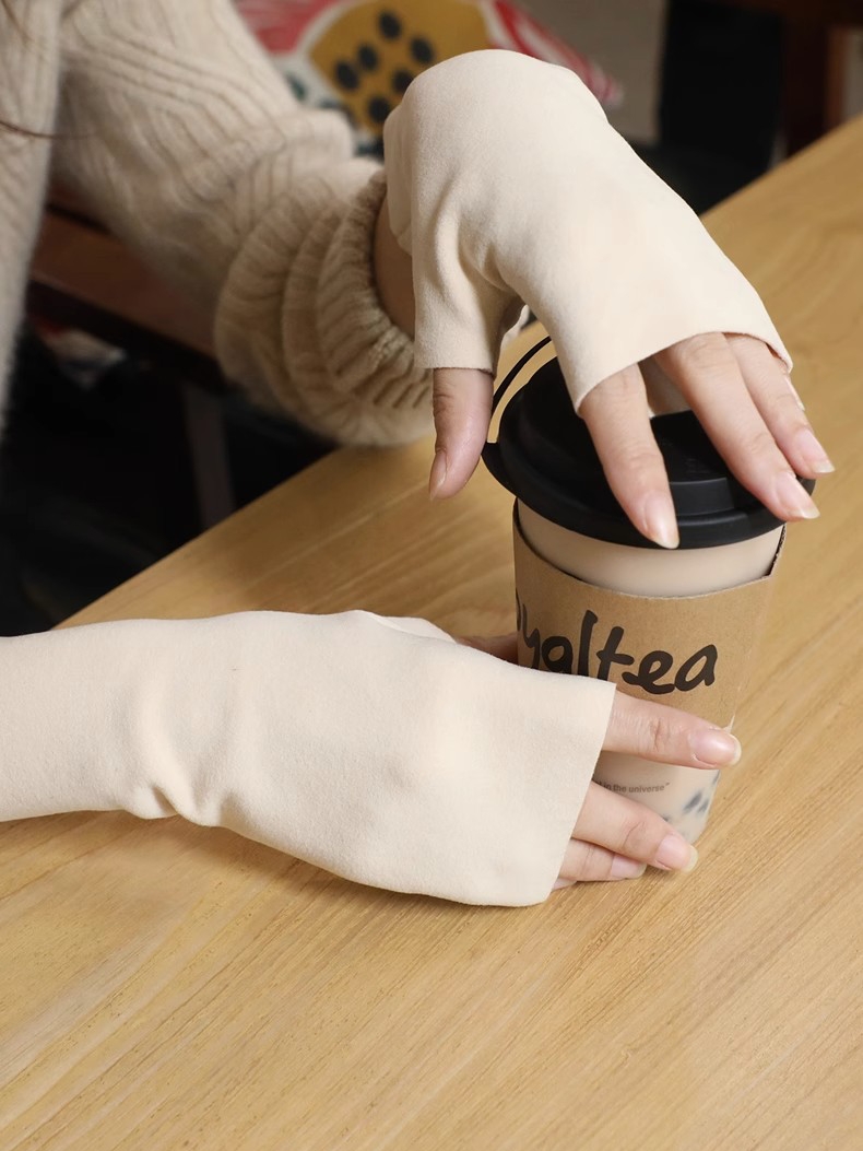 Winter Long Fingerless Gloves, Warm Half-Finger Gloves for Writing