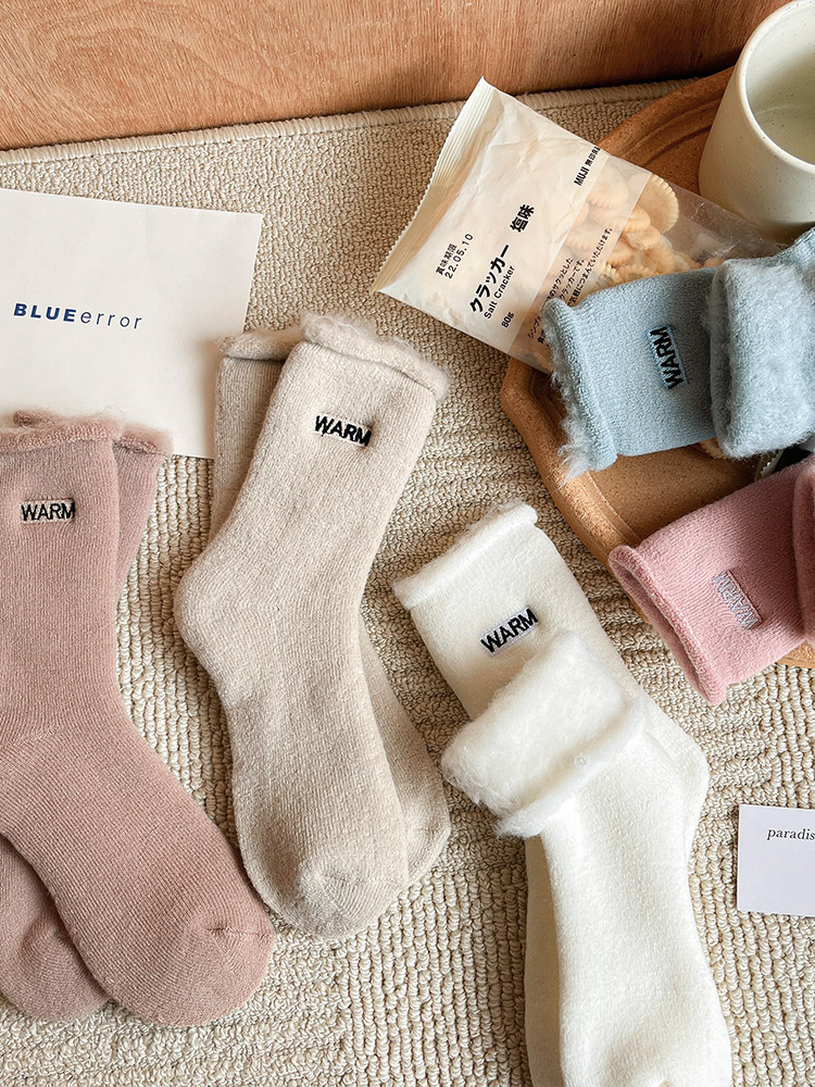 Winter Thick Socks Women’s Long Plush Snow Socks Mid-Calf Autumn Winter Warm Letter Embroidery