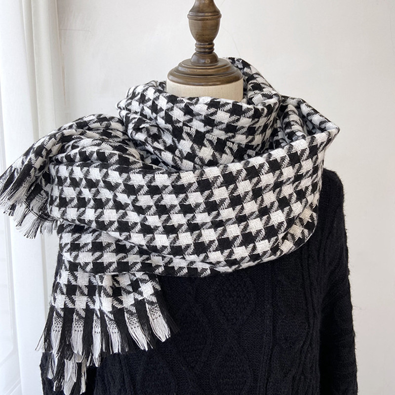 Winter Warm Plaid Scarf for Women 2024 New Couple Versatile Color-Block Knitted Student Houndstooth Neck Scarf