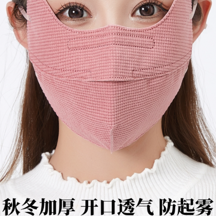 Winter Mask for Women Thickened Warm Open Design Anti-Fog Eye Protection Cold Resistant Solid Color Washable Large Face Mask