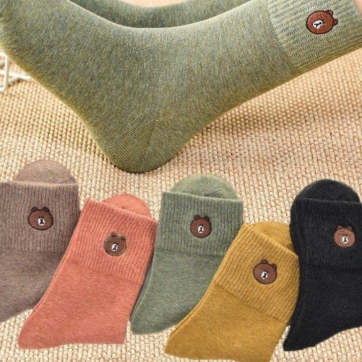 Autumn and Winter Thick Pile Socks Bear Socks Women’s Trendy Korean Style Mid-Calf Long Socks Odor-Proof Breathable Cute Cotton Socks