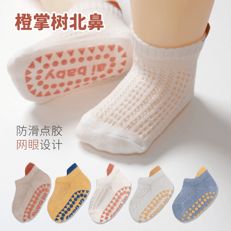 Orange Palm Tree Baby Summer Floor Socks Indoor Anti-Slip Breathable Thin Socks for Infants
