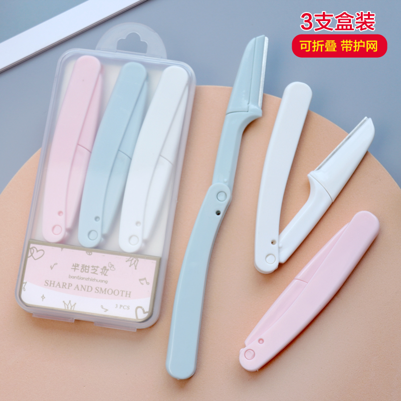 3-Piece Boxed Folding Eyebrow Razor, Safety Eyebrow Shaper for Beginners, Eyebrow Grooming Tool Set