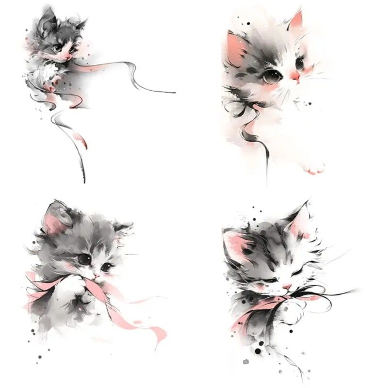 Cat Colorful Flower Arm Tattoo Stickers, INS Style, Social Niche, Long-lasting Realistic Cute Flower Arm