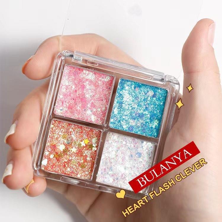 Children’s Stage Makeup Four-Color Eyeshadow Palette Glitter Gel No Glue Sparkling Eye Makeup for Performances
