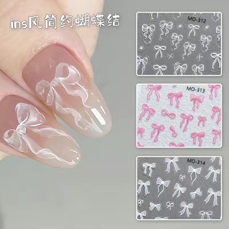 Bowknot Nail Stickers Ins Internet Celebrity Hot Sale Black and White Small Bow Japanese Simple Adhesive Nail Stickers