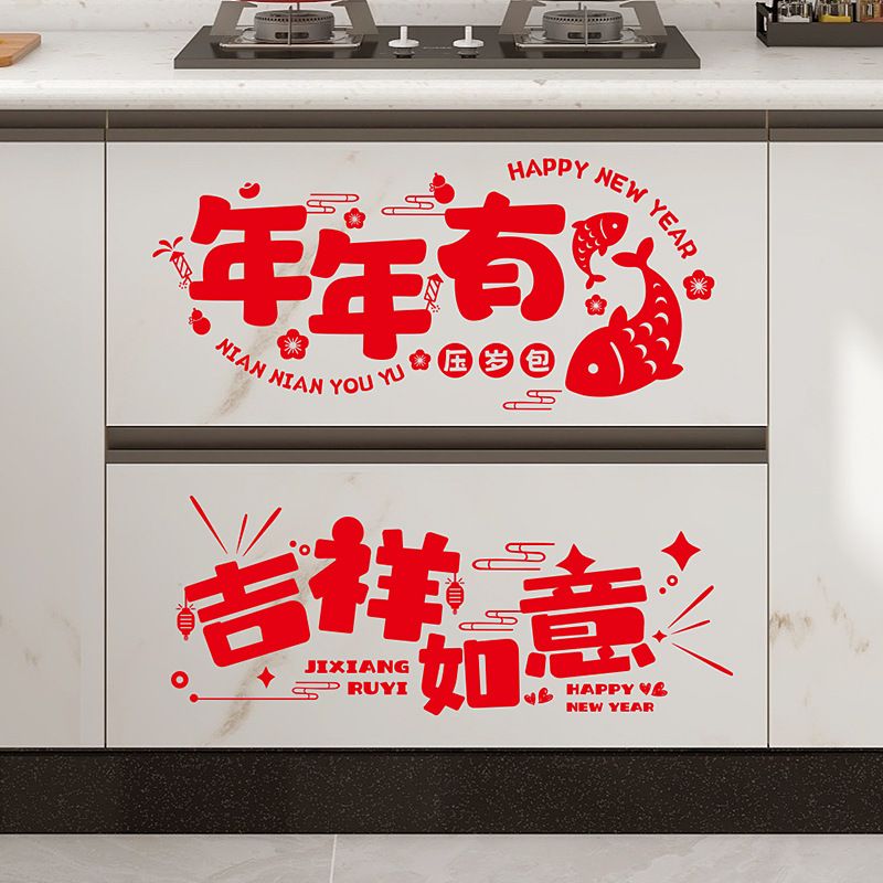 New Year Static Stickers Fu Character Window Flowers Glass Door Stickers Paper Cutting for New Year Spring Festival Scene Decoration