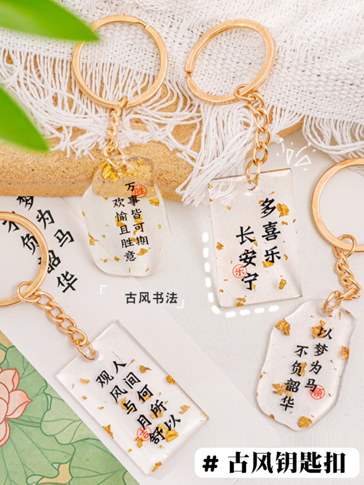 Original Ancient Style Epoxy Keychain, National Trend Chinese Style Bag Pendant, Retro Inspirational Text Key Ring