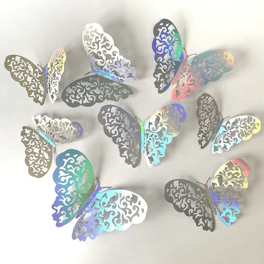 Paper Butterfly Living Room Bedroom Refrigerator Wall Stickers 3D Decorative Colorful Butterfly Decoration Metal Texture Hollow