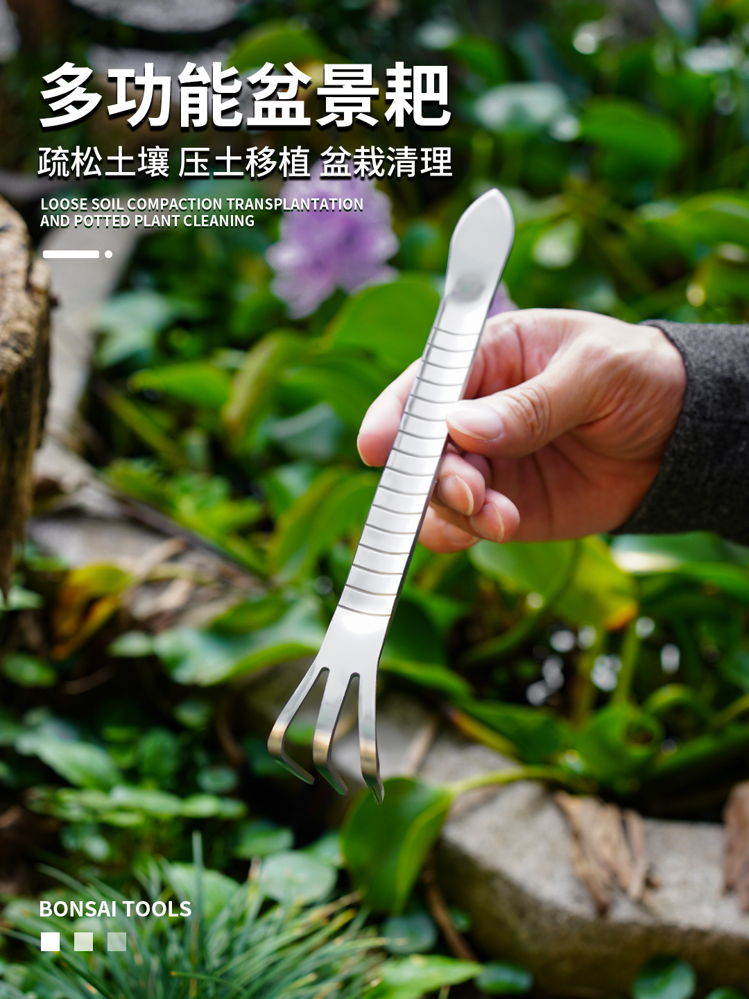 New Thickened Bonsai Rake Gardening Rake Handheld Bonsai Pruning Planting Two-in-One Rake Soil Loosening Pressing Tool