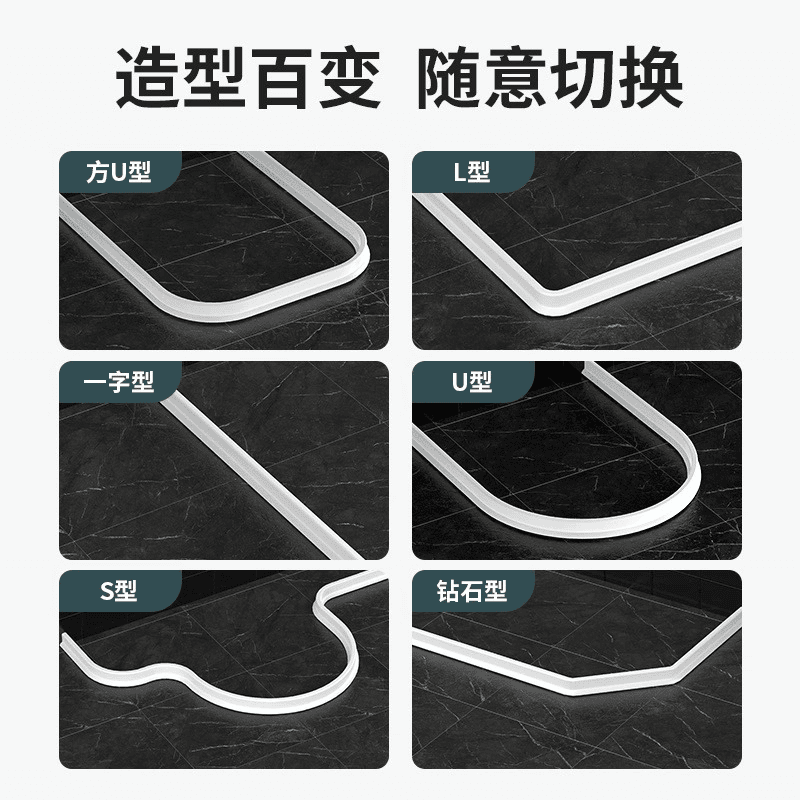 Water-Blocking Shower Room Floor Adhesive Water Barrier Strip, Silicone Door Threshold Water Barrier for Bathroom