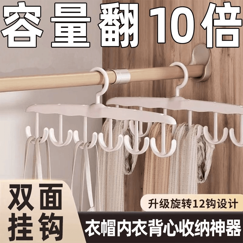 12 Hook Clothes Hanger Plastic Rotatable Hanger Tie Strap Underwear Vest Storage Tool Dormitory Hook Hanger