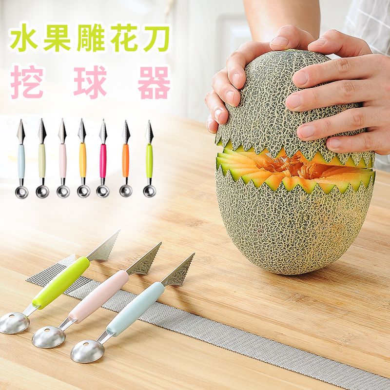 Double-Headed Stainless Steel Fruit Melon Baller, Ripple Carving Knife for Watermelon and Fruit Decoration