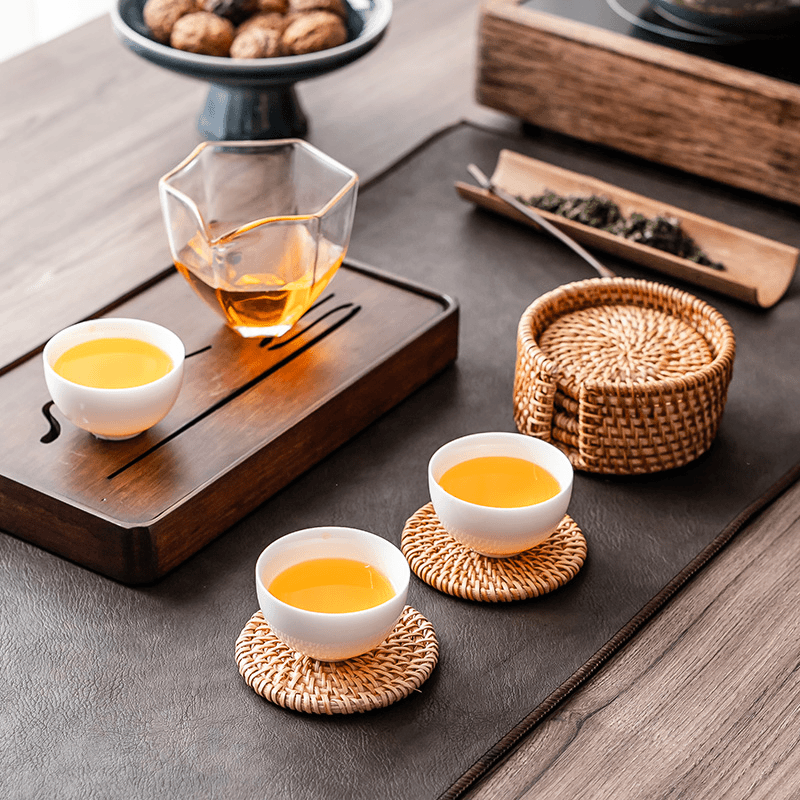 Heat-Resistant Non-Slip Kung Fu Tea Set Accessories, Handmade Rattan Woven Coasters, Bamboo Tea Cup Mat Set