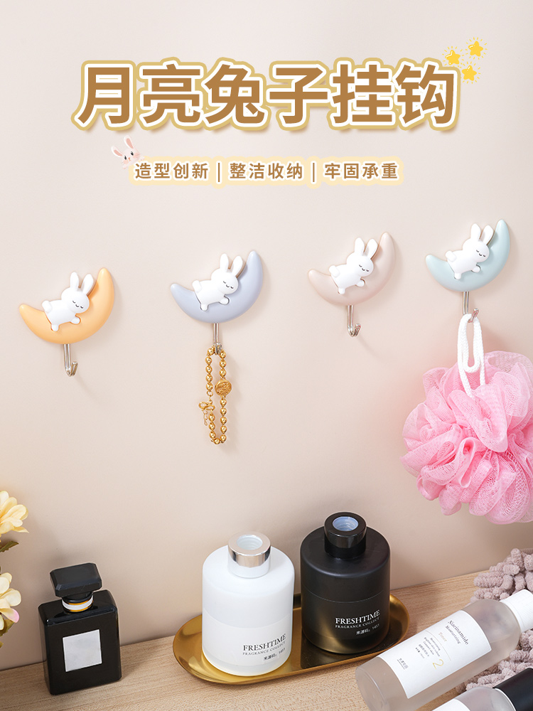 Moon Hook Cartoon Cute Adhesive Hook for Dormitory Home Kitchen Bathroom Wall Strong Load-Bearing Organizer