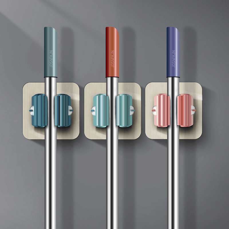 Mop Wall Hook, Strong Adhesive, No-drill, Multi-functional Hanging Rack for Bathroom and Dormitory