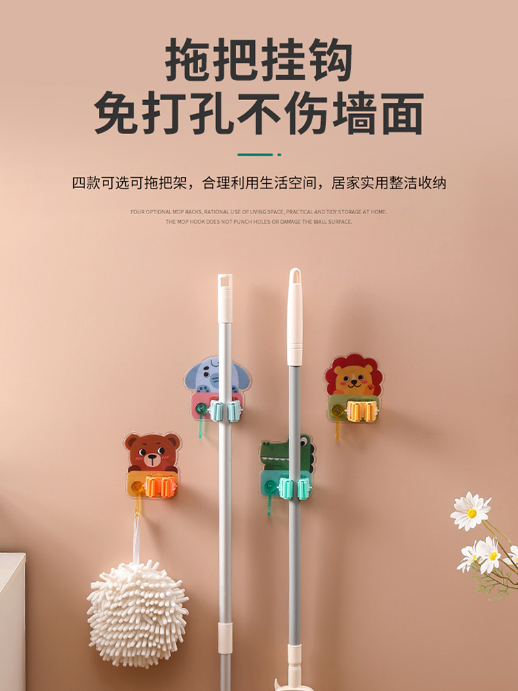 Animal Mop Rack No-Drill Bathroom Mop Holder Mop Hook Strong Wall-Mounted Fixed Clip