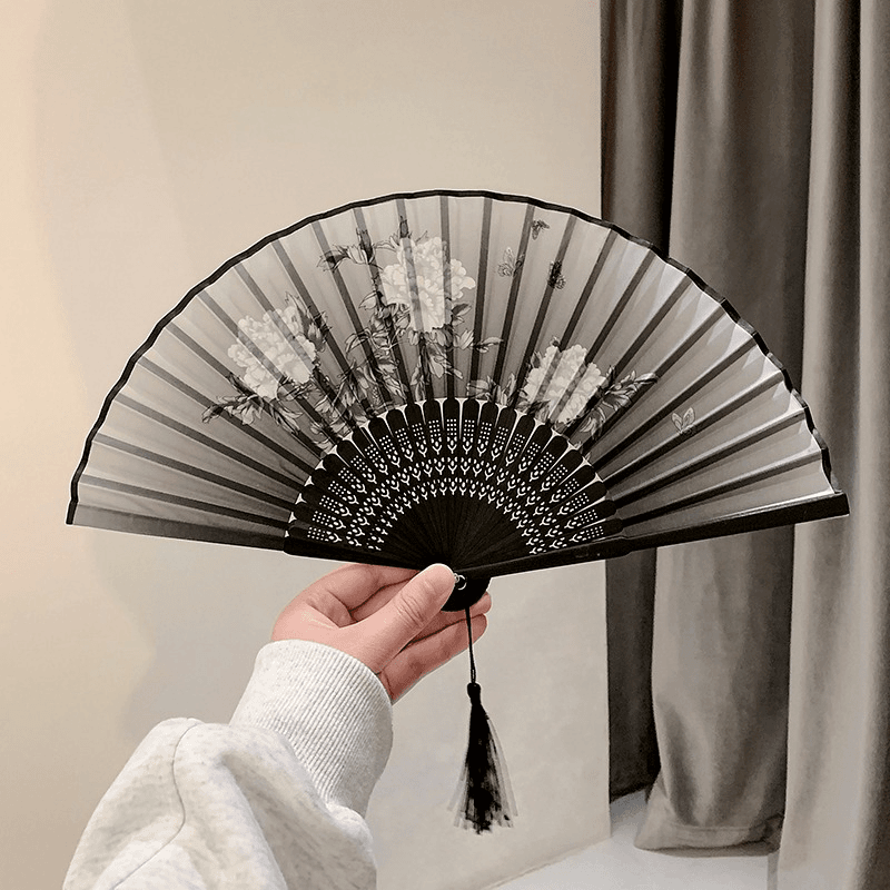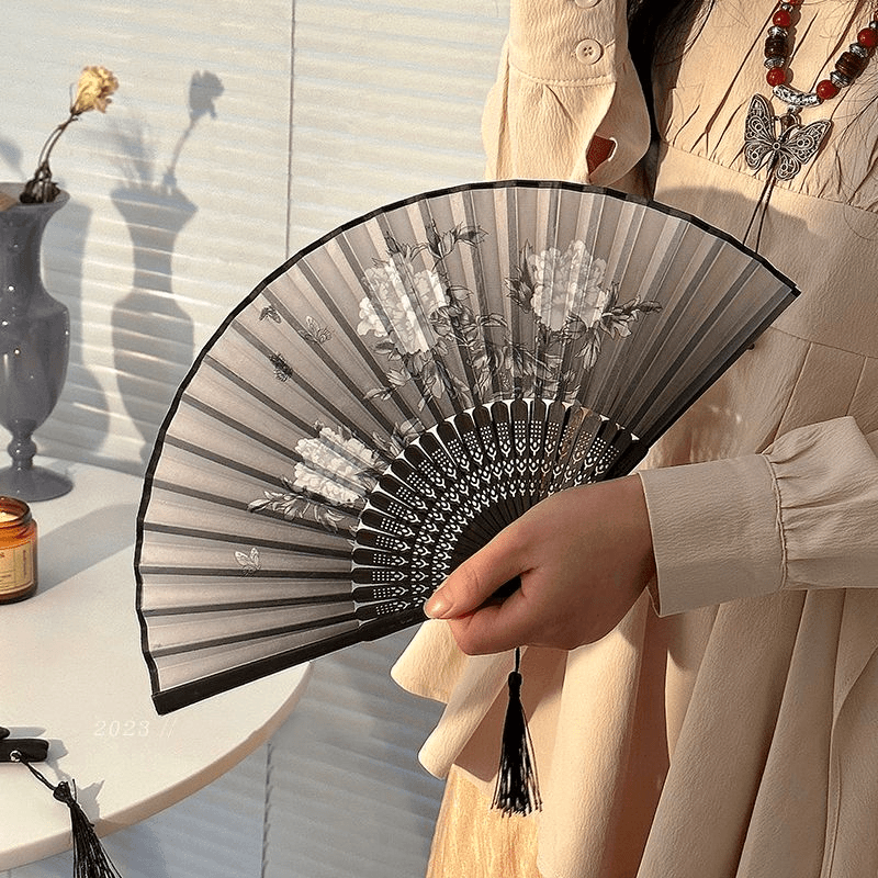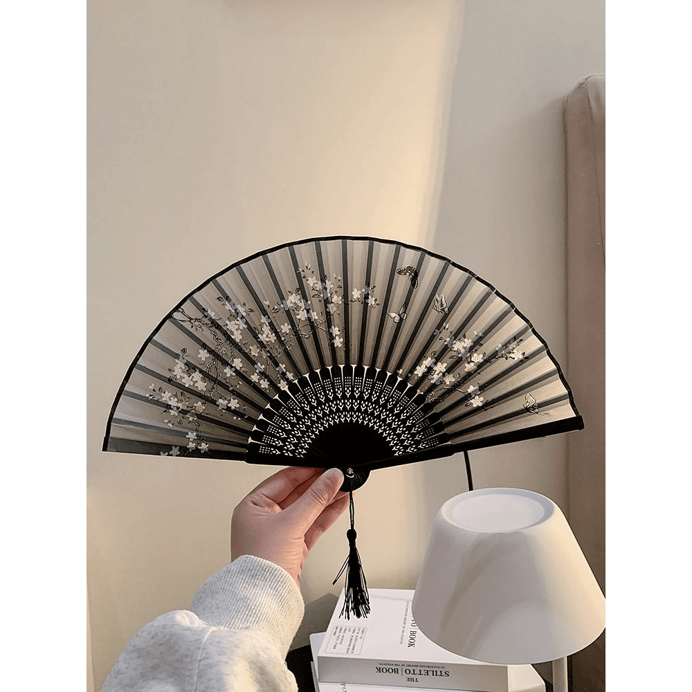 Ancient Style Fan Folding Fan for Women Portable Retro Bamboo Fan with Tassel Chinese Style Elegant Daily Fan