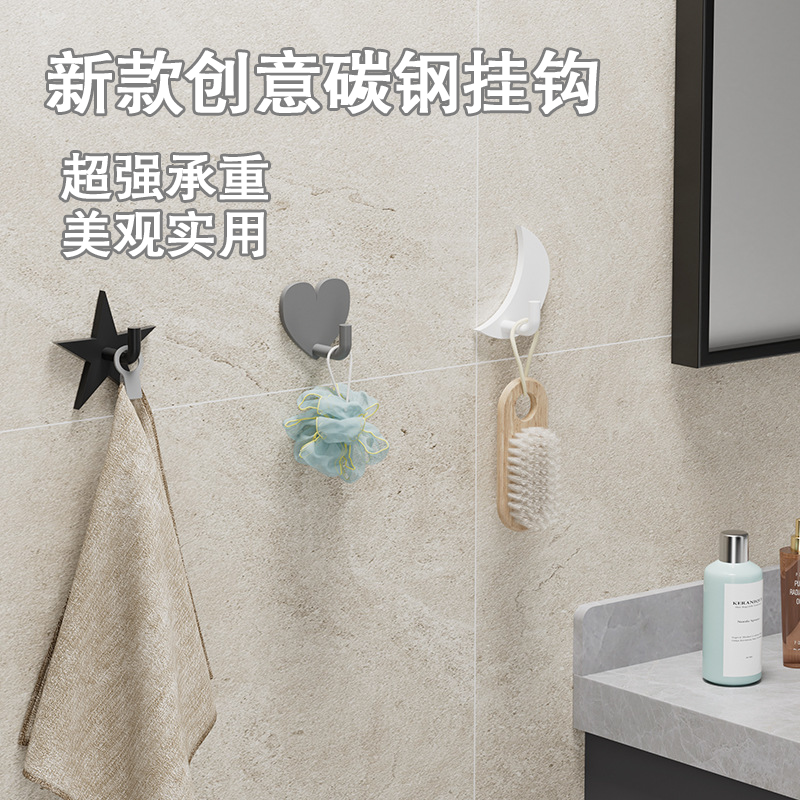 New Creative Carbon Steel Hooks, No-Drill Adhesive Hooks for Kitchen Walls