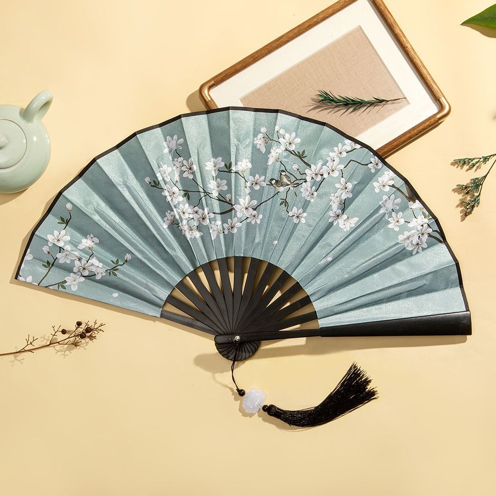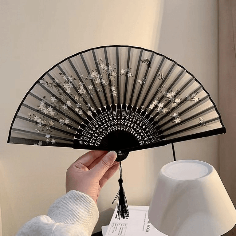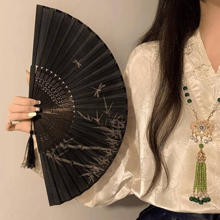 New Chinese Style Fan, Ancient Style Folding Fan, Black Cheongsam, Hanfu, Portable Dance Fan with Ma Mian Skirt