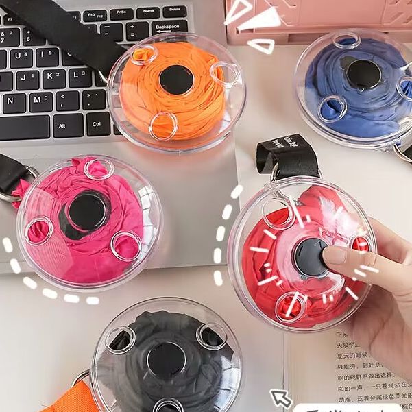 Small Round Shopping Bag, Supermarket Portable Tote Bag, Eco-Friendly Foldable Mini Stretch Nylon Grocery Bag