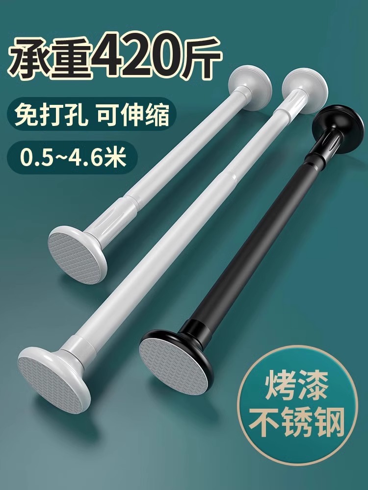 No Punching Telescopic Clothes Drying Rod Curtain Wardrobe Support Rod Bathroom No Nail Support Frame Retractable Hanging Shower Curtain Rod