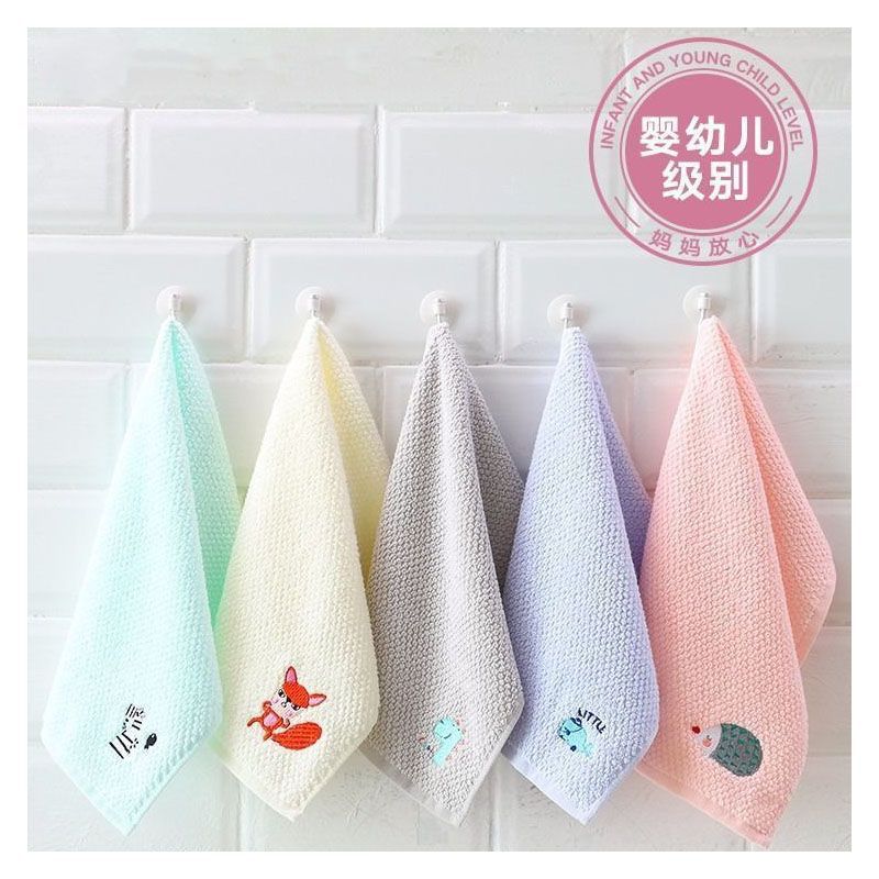 Children’s Small Towel, Pure Cotton Cartoon Baby Towel, Household Absorbent, Soft and Cute, Embroidered for Face Washing and Bathing