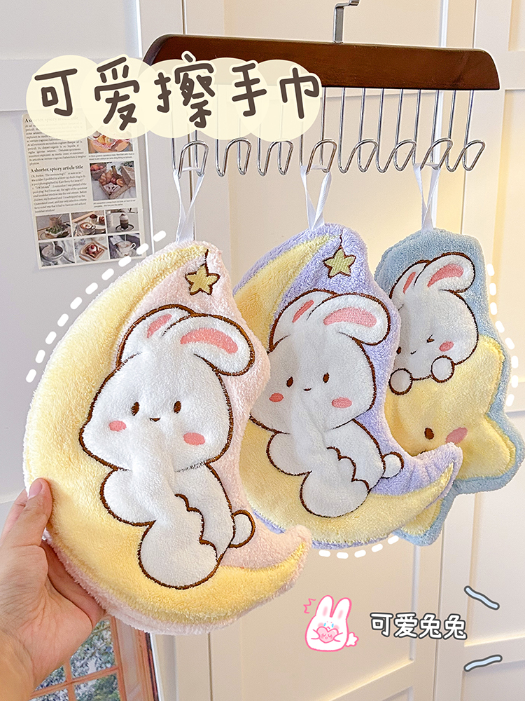 Cartoon Rabbit Hand Towel, Hanging Household Kitchen Absorbent, Non-shedding Cloth, Children’s Hand Towel