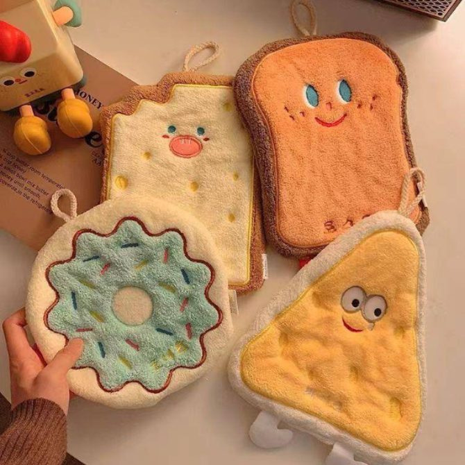 Cute Hand Towel, Hanging Absorbent Small Square Towel, Household Kitchen Wipe, Quick-Dry Hand Towel for Kids