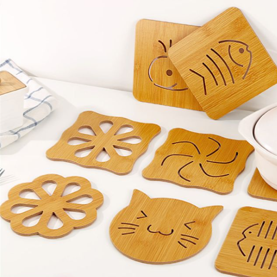 Heat Insulation Dining Mat Thickened Anti-Scald Wooden Dining Table Mat Creative Cute Cartoon Non-Slip Clay Pot Mat Plate Mat Cup Mat