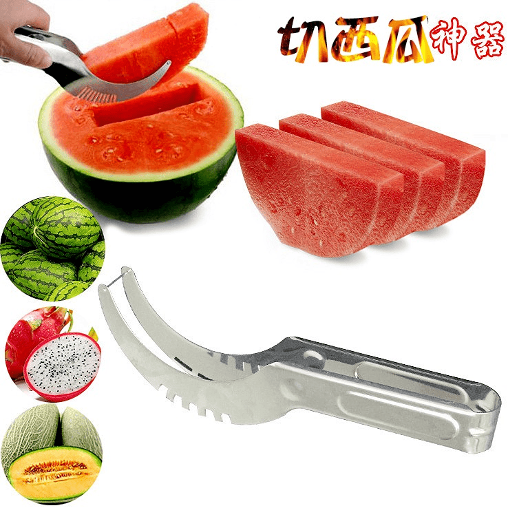Multi-functional Stainless Steel Watermelon Cutting Tool Watermelon Fruit Cutting Block Divider Knife Fork Household Melon Cutting Tool