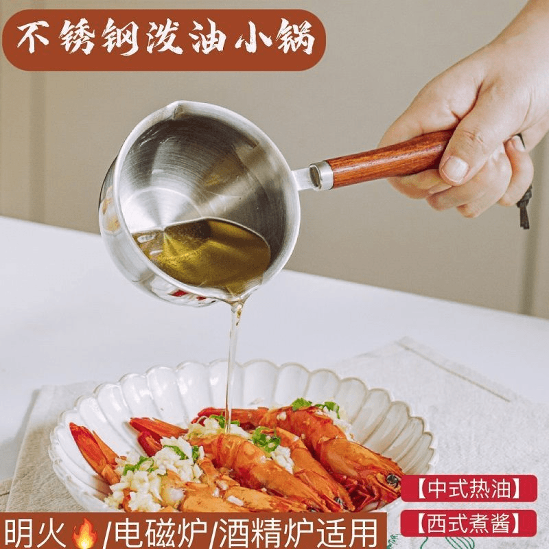 Multifunctional Hot Oil Small Pot Stainless Steel Universal Oil Splash Pot Household Oil Drizzler Thickened with Handle Seasoning Pot