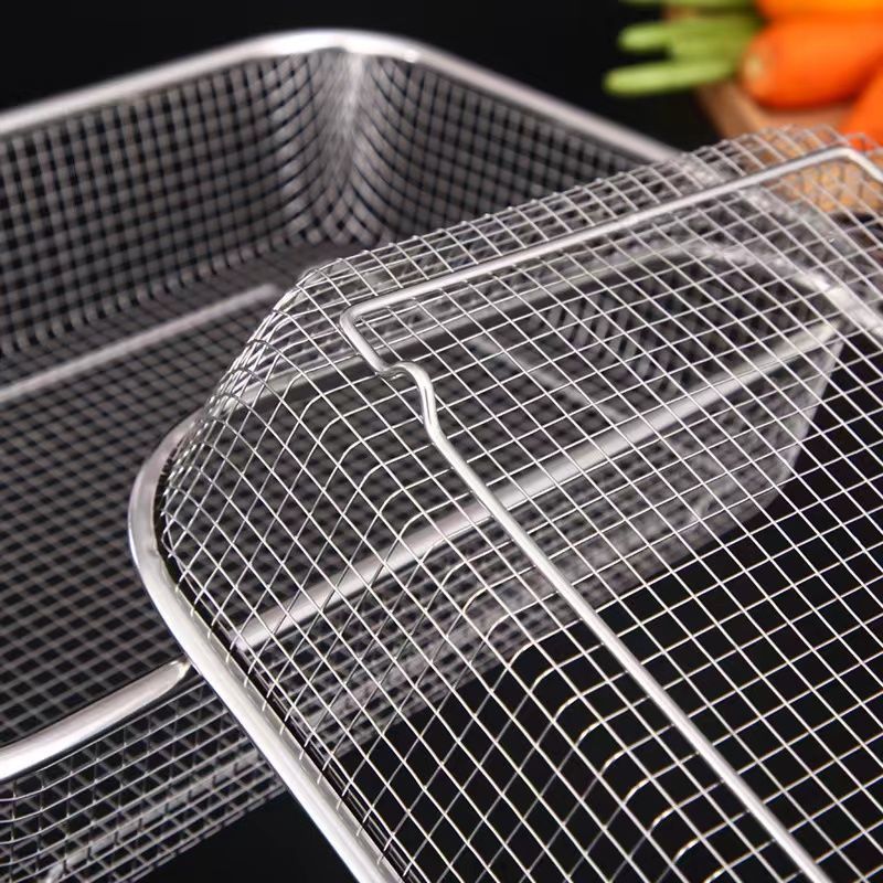 Vegetable Washing Basket Oil Filter Basket Multi-Use Draining Basket Stainless Steel Rectangular Strainer
