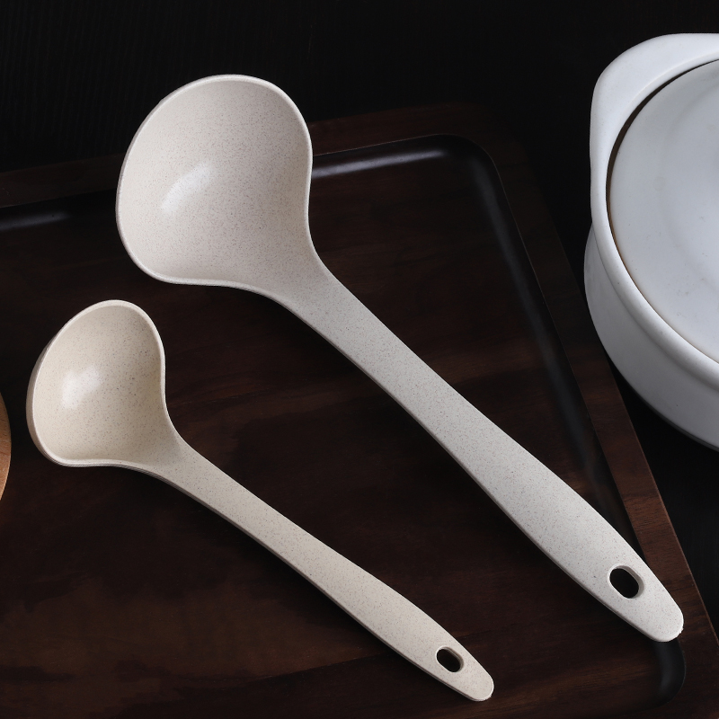 Wheat Fiber Soup Spoon Non-Stick Pot Spoon Drop-Resistant Heat-Resistant Long Handle Large and Small Soup Spoon for Home Use