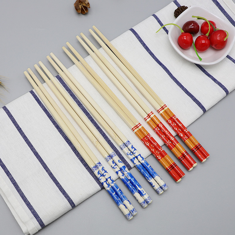 Disposable Chopsticks Individually Packaged Household Tableware Extra Long Moving Celebration Chopsticks Blue and White Bamboo Chopsticks