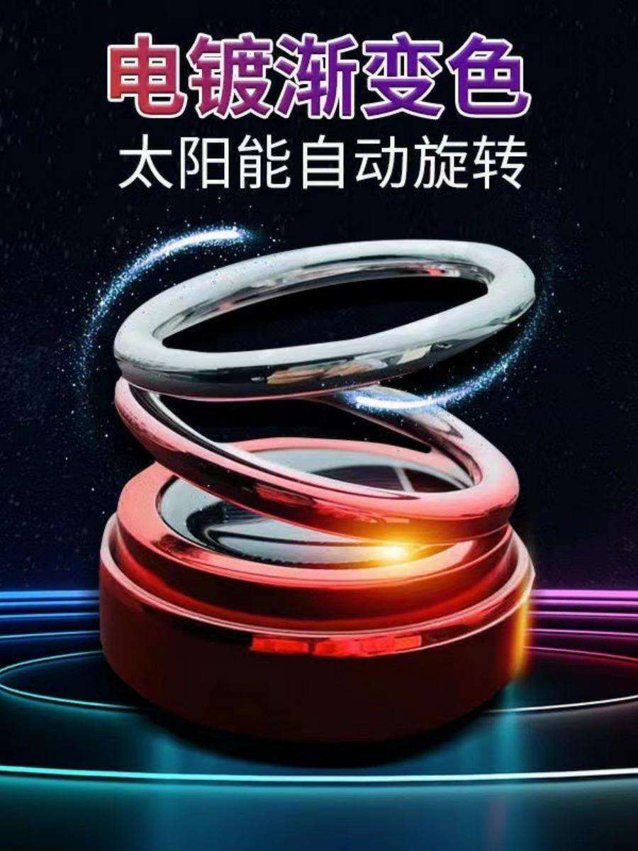 Solar Dual Ring Floating Rotating Car Air Freshener Perfume Ornament Lasting Light Fragrance Car Interior Decoration